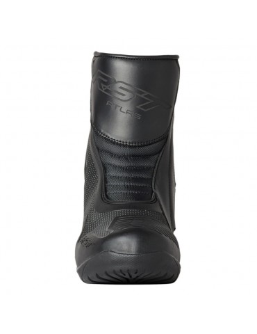 Boots RST Atlas MID black. The Atlas Mid boot exemplifies comfort and safety in all conditions. With a durable nylon upper and reflective dot matrix material, this boot is highly reflective at night, while its appearance is more subtle in daylight hours. Its CE-certified leather provides additional protection at the heel, with integrated ankle reinforcement, while the SinAqua lining is waterproof and breathable.