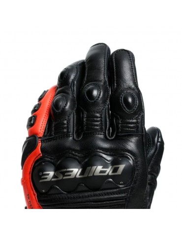 Gloves DAINESE 4-Stroke 2 black / fluor red. The best performance is between your hands. An icon of Dainese, the best in its category in short sports gloves. Steel knuckles and backhand, DCP system and thermoplastic protections on the little finger for unmatched protection. Leather construction and sheepskin palm with drum dyed treatment ensure great comfort and sensitivity for perfect control and confidence on the asphalt.