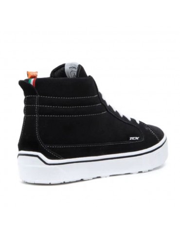 Shoes TCX Street 3 WP black / white. With their Converse-style look, the TCX Street three Waterproof motorcycle shoes will please the most urban bikers who use their bike for work or for a ride around town, because thanks to their anti-torsion sole, malleolar reinforcements and semi-rigid reinforcements at the heel and toe, they will allow them to ride in complete safety.