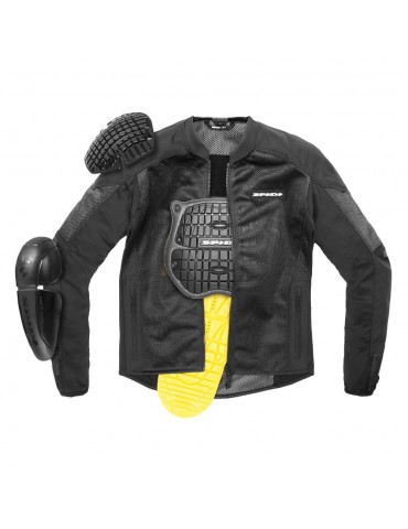 Jacket SPIDI Super Net black. The Spidi Super Net motorcycle jacket provides protection and ventilation in extremely hot conditions. Thanks to Spidi's patented STEP-INARMOR technology, it can be used as a stand-alone mesh jacket or under any other shell with exactly the same technology. It is made of high-strength polyester mesh coupled with flexible canvas inserts and protectors protect you on each and every ride
