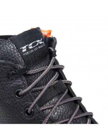 Shoes TCX Dartwood GTX black. Made of full grain leather with Gore-Tex membrane that guarantees maximum breathability. The closure is made by side zipper and laces with flexible band where you can keep the knots and thus avoid snagging on the footpegs of the bike. The TCX Dartwood has the latest generation D3O protections on the malleolus as well as other protectors on the toe and heel. The Groundtrax outsole is developed to ensure stability, grip and traction both on and off the bike.
