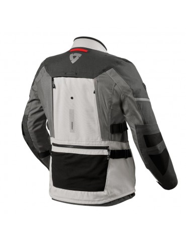 Jacket REVIT Sand 5 H2O silver / anthracite. The Sand 5 H2O jacket takes on a slightly sportier character compared to the Sand 4. As adventure bikes become more sport focused and dynamic, the Sand 5 H2O reflects this shift in the industry. Combining the fast-paced nature of sport and the thirst for the unknown, the Sand 5 H2O jacket merges two genres into one. In addition, the jacket is prepared to carry a hydration pack in the lower back pocket (like our Trail Vest), with a cutout in the left corner to insert a water tube under the arm and in front to attach it to the left side.