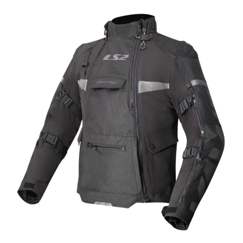 Jacket LS2 X-Master black. Adventure style 3-layer waterproof jacket, designed for all seasons, with multiple vents adaptable to any climate. Includes a removable thermal liner and a detachable waterproof layer that can be worn over or under the jacket.