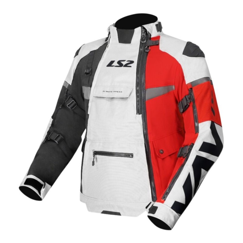 Jacket LS2 X-Master black / gray / red. Adventure style 3-layer waterproof jacket, designed for all seasons, with multiple vents adaptable to any climate. Includes a removable thermal liner and a detachable waterproof layer that can be worn over or under the jacket.