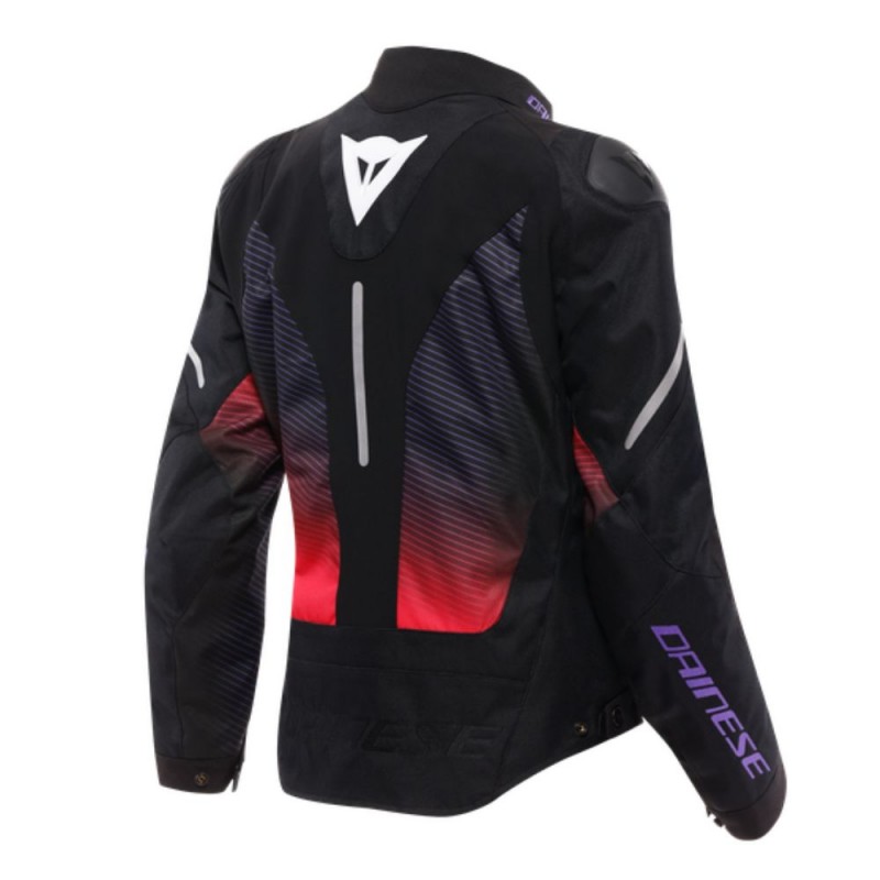 Jacket DAINESE Super Sprint D-DRY Lady black / fuchsia / white. The Super Sprint D-Dry® Jacket is a women's sport motorcycle jacket with a distinctive design inspired by iconic racing suits. Perfect for lovers of speed, it features a fixed, waterproof D-Dry® membrane and polyester fabric with stretch inserts for a perfect fit. A removable thermal lining provides optimal warmth in all weather conditions. It's perfect for everyday use or all-day riding.
