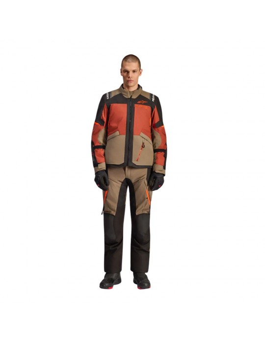 Jacket ALPINESTARS Andes V4 Drystar walnut / rust / black. The Andes v4 Drystar® Jacket combines advanced functionality with sleek, modern styling that both adventure riders and commuters will appreciate for its practicality and all-weather performance. Alpinestars' Drystar® construction ensures 100% waterproof protection and breathability for riding in any weather condition.