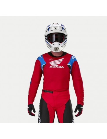 T-shirt ALPINESTARS Honda Racer Iconic bright red / black / white. The new Honda Racer Iconic jersey is designed for intermediate racing and offers a sporty fit with a focus on performance, comfort and durability. Developed and tested on some of the world's toughest terrain, the sport fit Racer Iconic jersey is ideal for many forms of off-road riding thanks to pre-curved sleeves and extremely lightweight and durable moisture wicking materials. The Honda Racer Iconic T-Shirt won't let you down when the trail or trails get rough, as it is designed to perform in the toughest conditions. The shirt comes in a range of distinctive and aggressive color combinations and is designed to match the Honda Racer Iconic pants and Honda Full Bore gloves for a total performance look and feel.