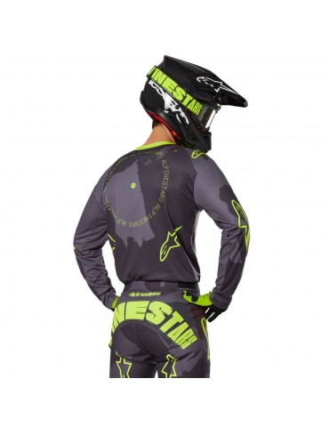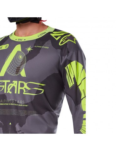 Jersey ALPINESTARS Racer Hollow dark camo / yellow fluo. Developed and tested in some of the toughest terrains around the world, the Racer gear is ideal for many forms of off-road riding thanks to its ergonomic, pre-curved design and its lightness and breathability.