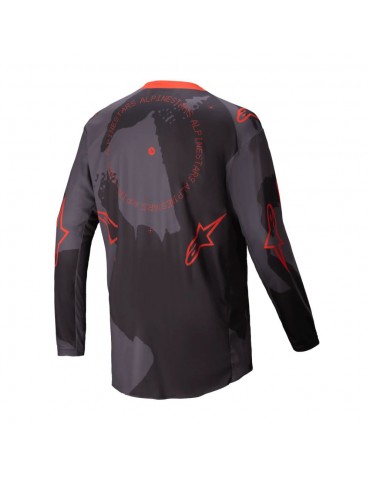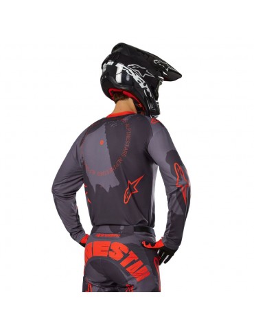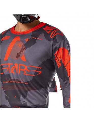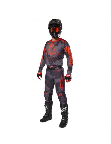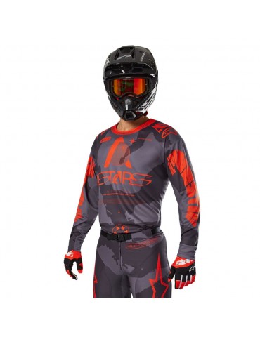 Jersey ALPINESTARS Racer Hollow gray camo / orange fluo. Developed and tested in some of the toughest terrains around the world, the Racer gear is ideal for many forms of off-road riding thanks to its ergonomic, pre-curved design and its lightness and breathability.