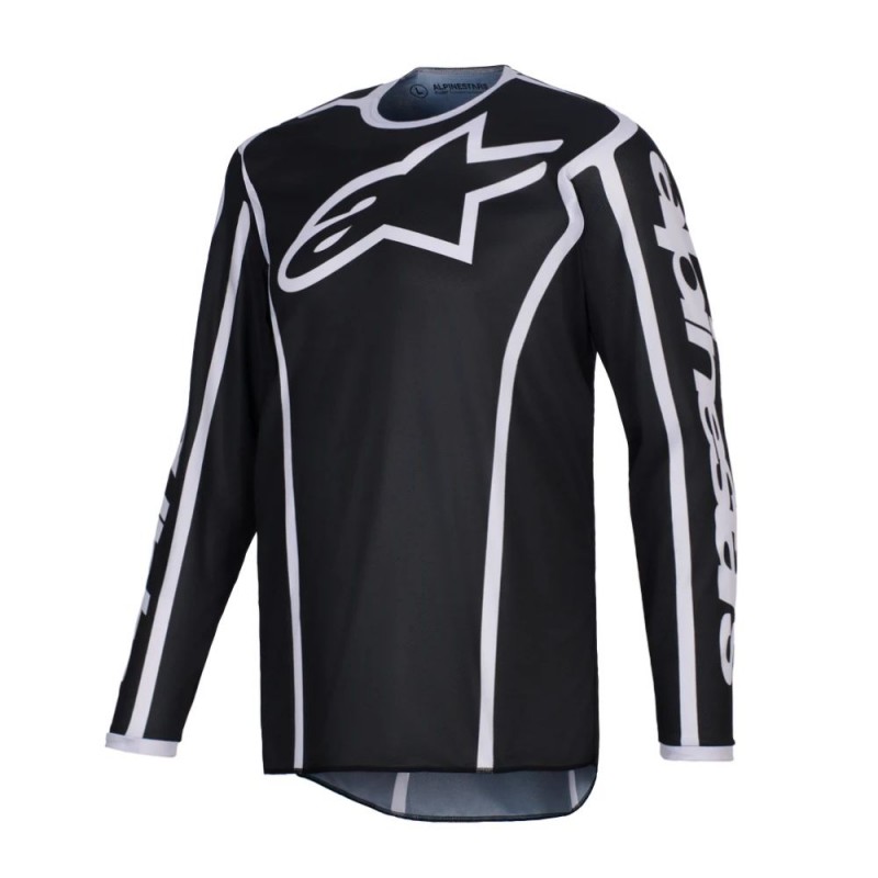 Jersey ALPINESTARS Fluid Apex black / gray. The Fluid line offers recreational motocross riders gear with optimal MX technology that leverages key construction features from the Supertech, Techstar, and Racer lines for total look and performance, optimized for comfort and functionality while riding. Developed and tested in some of the world's most demanding terrain, the Fluid line with its sporty fit is ideal for many forms of off-road riding and offers the most relaxed fit of all MX26 gear lines.