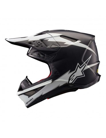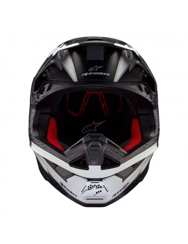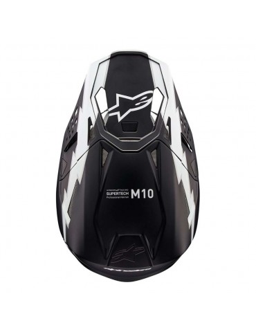 Helmet ALPINESTARS Supertech S-M10 Ampress black / white matte. The design of the S-M10 offers an aerodynamic, attractive and smooth profile, streamlined and free of external channels and features that could act as a load point in an impact or compromise the overall integrity of the helmet's construction. The curvature of the surface promotes reduced friction on impact, allowing for deflection and more efficient energy transfer to protect the rider's head from direct force to the skull and referred to the neck and spine.