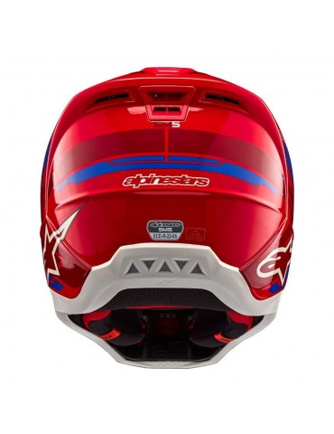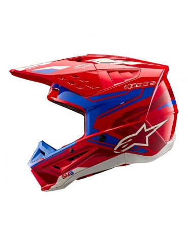 Helmet ALPINESTARS S-M5 Action 2 bright red / blue. The Alpinestars S-M5 is an entry-level motocross helmet with thermoinjected multilayer shell. It offers a wide field of vision, an efficient ventilation system and smooth, dynamic lines. The S-M5 meets the requirements of the ECE 22.06 standard.