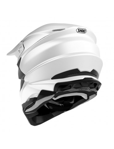 Helmet SHOEI VFX-WR 06 white. The prestigious Japanese helmet manufacturer Shoei has presented the latest evolution of its VFX WR 06, now with ECE 22/06 homologation, the latest in safety systems and new and attractive designs for the most emblematic model of the firm of the country of the rising sun in off-road. Shoei's new generation VFX-WR is equipped with the latest safety systems and exclusive AIM+ multi-fiber manufacturing technology for optimal lightness and rigidity and EPS shock absorption system, in addition to the MEDS liner mechanism to reduce rotational acceleration of the head in case of an accident and the EQRS emergency removal system, which allows medical services to easily remove the side padding and remove the helmet safely without forcing the neck part, thus avoiding or aggravating possible neck injuries.