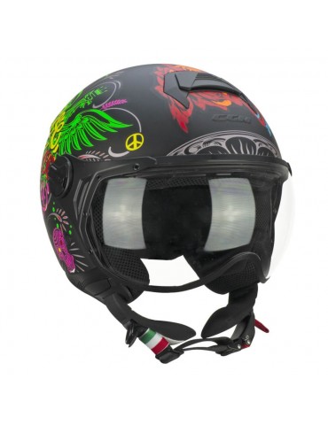 Helmet CGM 167S FLO Joy Forma black / blue / green matte. Designed from its predecessor 107 FLORENCE, the 167 FLO is the new reference for your urban routes. Designed in 3 outer shell sizes and a total of 8 sizes, it guarantees maximum comfort of use combined with safety, lightness and compact design. Characterized by the interchangeability of the visor: long, for greater protection against the wind or shaped, for a more captivating look. It has AIR STREAM SYSTEM ventilation system, thermoformed hexagonal interiors with fully removable and washable ExtraCool fabric with high visibility bands. The features are completed by the anti-theft ring on the strap, micrometric buckle and elastic strap fastener.