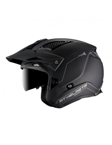 Helmet MT TR902SVB District SV S Solid A1 matte. With the MT District SV you will be able to discover the last corner of your city or to cross the obstacles of nature on a trial bike. Its multifunctional design makes it a compact, comfortable and practical helmet for urban commuting, and a perfect choice for mountain enthusiasts.