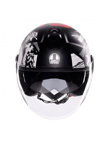 Helmet AGV Eteres E2206 History matt black / white / red. The new AGV jet (ECE 22.06) an urban, young, casual helmet that is as groundbreaking as it is innovative. Fully removable, the screen is easily removed and you can put some caps included and turn it into a jet with sunglasses in less than five minutes.