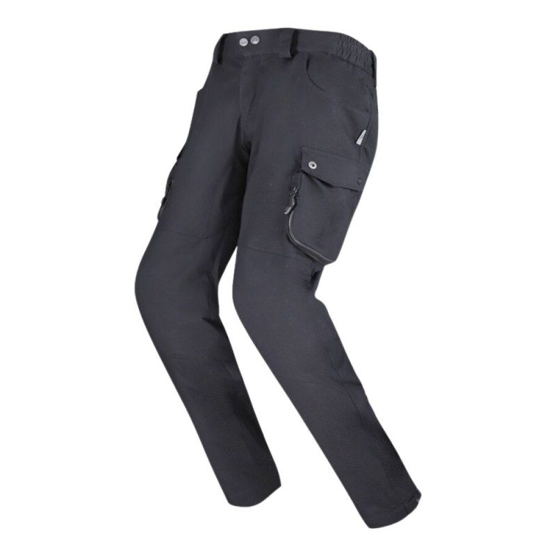 Pants LS2 Coast black. Casual cargo pants made of cotton and reinforced with Kevlar® fibers for durability and protection. Designed to offer maximum comfort with an elastic waistband and excellent breathability, thanks to an innovative ventilation system.