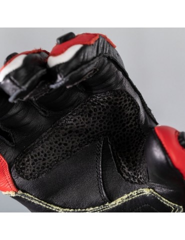 Made from full grain kangaroo and cowhide leather. With carbon knuckle protector, CE Level 2, which protects you from possible impacts. DuPont™ Kevlar® fiber in the seams and base of the palm, plus the double layer of kangaroo leather and RST palm slider keep your hand safe in case of high-speed rubbing. On the other hand, the double wrist closure gives you a reliable and secure fit. The DuPont™ Kevlar® liner along the rest of the glove prevents tearing, while the elasticized pinky bridge protects your fingers without making it difficult to shift gears.