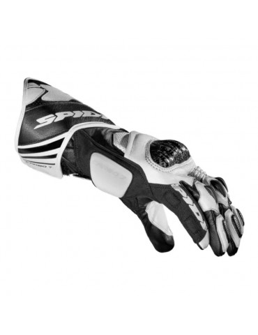 Gloves SPIDI Carbo 7 black / white. The SPIDI Carbo 7 are the latest version of the high-tech Carbo series racing gloves, trusted by top-level professional motorsport riders around the world thanks to their CE Level 1 EN 13594:2015 KP certification. Each glove is made of 0.6 mm to 0.8 mm goatskin leather, highly appreciated for its lightness and extreme resistance to abrasion and tearing. Its carbon fiber protection is placed over both knuckles, and the gloves have high-density padding on the palm, back of the hand and side of the hand.