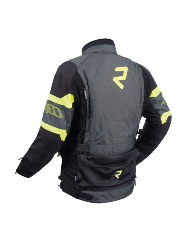 The Rukka Madagasca-R jacket is made of 500D Cordura, incorporating a removable 3-layer Gore-Tex Performance Technology inner lining, offering high impermeability. This adventure-style jacket has openings on the chest, sleeves, shoulders and back that are regulated with zippers that allow for high ventilation in times of high temperatures.