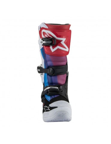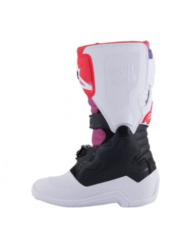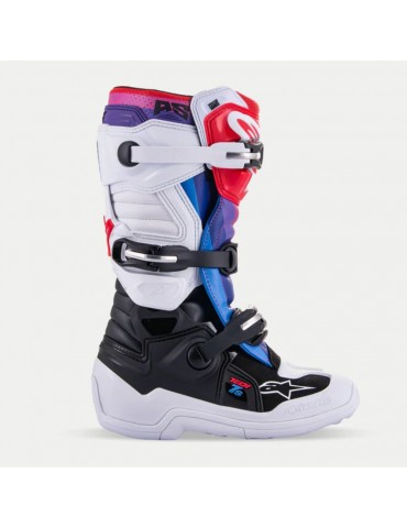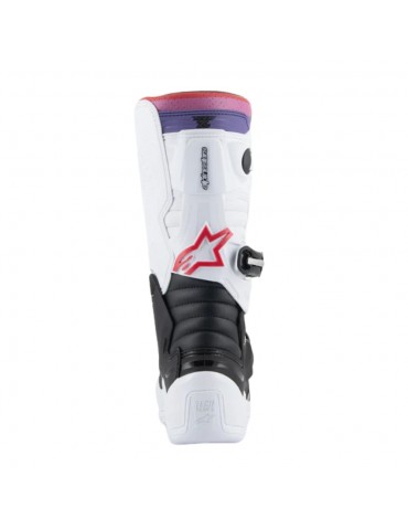 Boots ALPINESTARS Tech 7S Junior white / black / rainbow. The revolutionary Tech 7S incorporates innovative materials and technology in an all-new design, which is identified as being lighter and more anatomically precise. These CE-certified boots provide increased stability and flexibility, while offering superior ankle protection.
