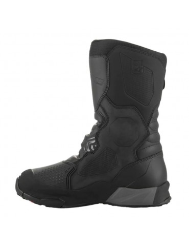 Boots ALPINESTARS XT-8 Gore-Tex black / black. The XT-8 GORE-TEX adventure enduro boot is designed to perform in demanding off-road riding conditions, offering enhanced support, motion control, impact protection and all-weather performance. The GORE-TEX membrane provides exceptional climate management, delivering breathability and 100% waterproofing, making it the perfect year-round boot for adventure travel or off-road exploration in all weather conditions. Designed for superior comfort, the XT-8 GORE-TEX adventure enduro protective boot has a unique, full-length EVA midsole reinforced with a Transverse Protection Frame (TPF), engineered flex and a cushioned heel disc for unmatched comfort. -day hiking and long travel, riding comfort. The XT-8 GORE-TEX boots incorporate a new approach to silhouette design and styling and offer comfort, premium feel and a taller length (27 cm) than a standard street boot, providing the extended protection needed for off-road adventure riders.