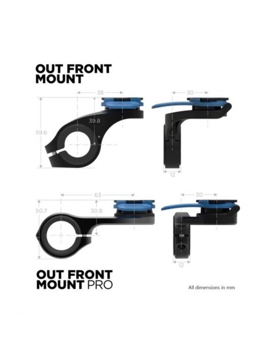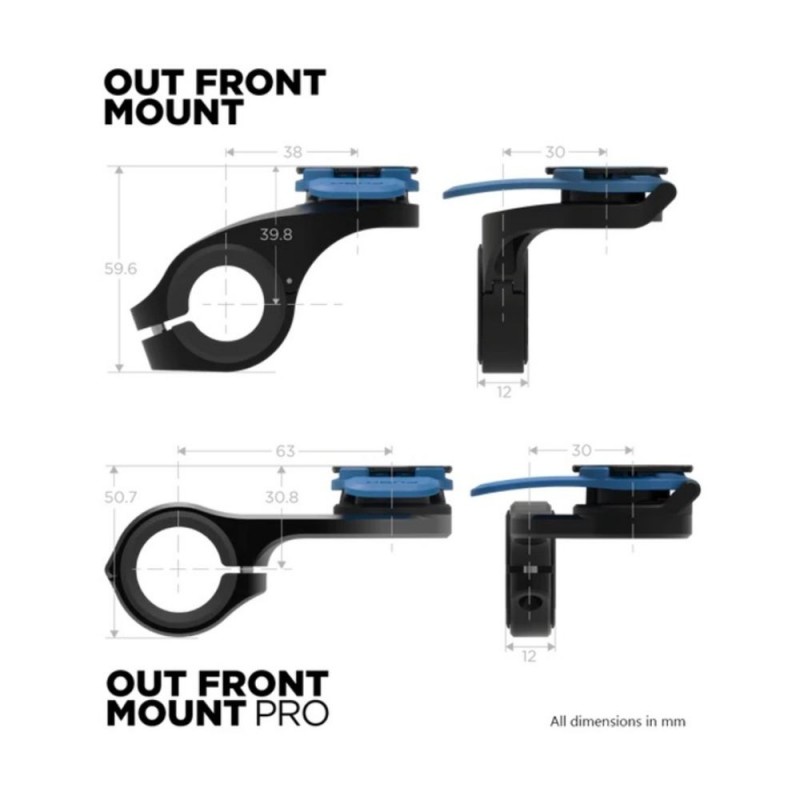 Support QUAD LOCK Front Pro. Both mounts are designed to be aerodynamic. The Out Front Mount PRO has a lower profile and a super stiff anodized aluminum mounting arm. The standard front mount can be reversed to fit your bike's handlebar stem. These mounts feature patented dual-stage locking, allowing you to ride with confidence knowing that your smartphone will remain secure on your bike, no matter the terrain.