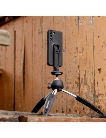 Simply install the Quad Lock® tripod adapter on your tripod, then rotate and lock your Quad Lock®-equipped smartphone directly into the mount.