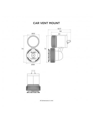 MAG support QUAD LOCK Ventilation grille. The ingenious hook design securely attaches the mount to a variety of car vents while allowing you to operate the open/close function.