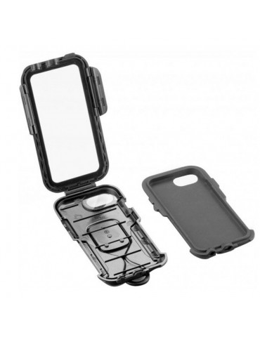 This INTERPHONE Pro case is compatible with the IPHONE 8, 7, 6S and 6 models. Its structure is designed to withstand rain, snow and different weather conditions. It has an IPX4 degree of waterproofing. The touch screen can be used when the phone is in the case and the battery can be easily charged. It has a 360º adjustable clamp and safety straps for greater protection.