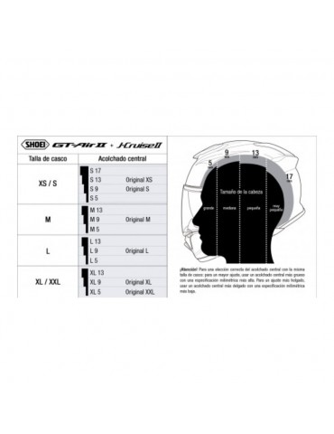 Replacement SHOEI GT-Air 2 / J-Cruise 2. Central padding for Shoei GT-Air 2 helmet. The thickness of the padding is measured in millimeters. To achieve a smaller fit thinner measures are used, to achieve a greater fit thicker measures. Check size chart for each padding.