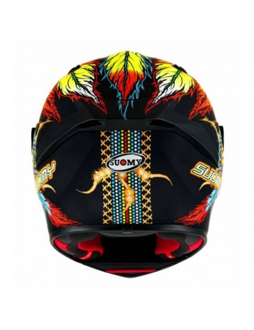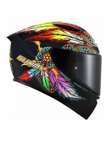 Helmet SUOMY Track-1 Chieftain Multi black matt E06. Full-face sports helmet made of Tricarboco. Developed in wind tunnel and with dynamic shapes, it is ideal for both circuit and road. It has an efficient ventilation system, hydrocool inner padding and an aerodynamic rear spoiler. It is homologated according to the new ECE 22.06 standard.