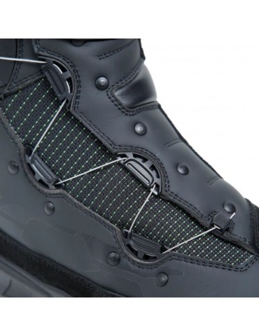 Boots TCX Infinity 3 GTX black. New for the two thousand twenty-two season, the TCX Infinity 3 boot is aimed at the road rider who wants a somewhat "adventurous" look. With its wrap-around "heat shield" to protect the shin, the Infinity three has an off-road look, but the truth is that this is a road boot. It's not even what you would call a 'crossover' boot. A crossover boot can be used off-road as well as on, but this is not a boot you would venture off-road in unless, obviously, you find yourself in the mud by accident. The target market for the TCX Infinity 3 is the adventure rider who pretty much never leaves things black; and let's face it, that's for most adventure bike owners! This is a boot you could commute or travel with. It will keep your feet dry and you're going to be properly protected.