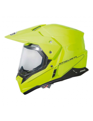 Helmet MT Synchrony Duo Sport Solid bright fluor yellow. This helmet has excellent finishes and its design makes it ideal for motorcyclists who own Trail or Enduro motorcycles. Synchrony Duo is characterized largely by the great safety it offers, for its excellent comfort and especially for the wide field of vision that provides the rider.