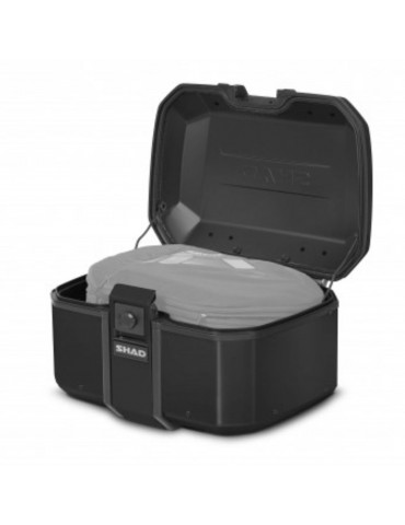 Trunk SHAD TR55 Terra pure black. The new TR55 Pure Black top case, designed and manufactured in Barcelona, also carries with it the ABC Awards 2022 recognition, thanks to its design with slightly curved sides that minimizes the visual impact on the bike. The optimization of the dimensions and the use of hardened aluminum alloys of 1.2 mm, allow to reduce the weight of the case to the maximum, making it with its 5.4 kg, the lightest 2 helmet aluminum case on the market.