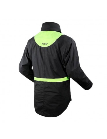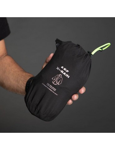 Jacket LS2 X-Rain black / h-v yellow. Lightweight waterproof rainproof jacket. Perfect comfort and fit thanks to its adjustment straps at the waist. High collar for effective wind protection and foldable rain hood.