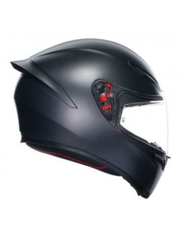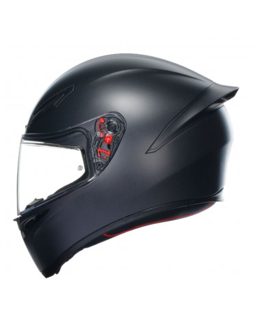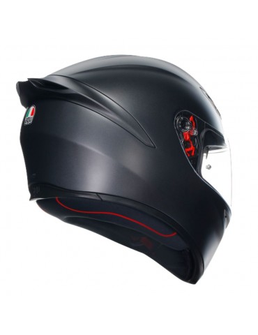 Casco AGV K1 S E2206 negro mate. La manera aerodinámica, las rejas de ventilación frontales desarrolladas para la competición y el alerón probado en túnel de viento maximizan las posibilidades y dan estabilidad a grandes velocidades. La gorra panorámica antirayaduras ofrece un campo de visión más extenso, tanto lateral como vertical, para un control total del ambiente. Con los suaves y desmontables interiores Dry-Comfort, la comodidad está asegurada.