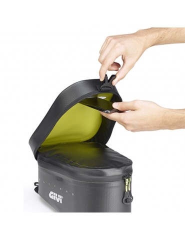 Bolsa depósito GIVI GRT716 Impermeable negro 6 LTS. Bolsa depósito impermeable negra, 6 Lts, con interior de color amarillo.