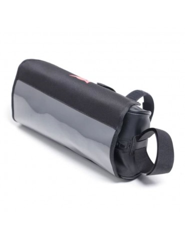 Bolso de manillar DAINESE negro. Práctica bolsa impermeable que se fija al manillar de la moto con cuatro fuertes cierres de velcro. Funcional y amplia, lleva cremalleras impermeables y un bolsillo transparente para el móvil o el navegador.