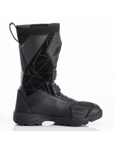 Botas RST Adventure-X WP negro. Con un sistema de cierre de doble hebilla, la Adventure-X es fácil de poner y quitar, pero también se mantiene en su sitio cuando la llevas puesta gracias a los reguladores de velcro. Este sistema permite que la bota se adapte a varios tamaños de pantorilla, dándote así un ajuste cómodo y seguro. La membrana transpirable SinAqua Pro mantiene tus pies secos y frecos, tanto al conducir bajo la lluvia como al surcar el barro. Cuenta con una suela de bota de senderismo, que le da más adherencia, ¡así podrás enfrentar cualquier aventura con tu moto!