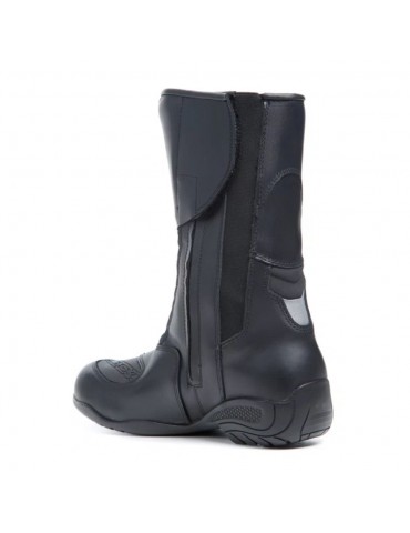 Botas TCX Lady Aura Plus WP negro. Elegantes botas de turismo para mujer, confeccionadas en piel flor refinada de alta calidad y durabilidad. Muy convenientes para largos viajes con climatología variable. Disponen de membrana impermeable T-Dry para un perfecto rendimiento bajo la lluvia y protecciones en zonas clave de impacto para mayor seguridad. Además disponen de un cierre práctico con cremallera de alta calidad y banda de velcro para un buen ajuste. Las botas TCX Lady Aura Plus WP se caracterizan por ofrecer confort y sensibilidad a lo largo de la conducción.