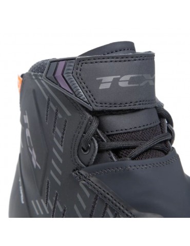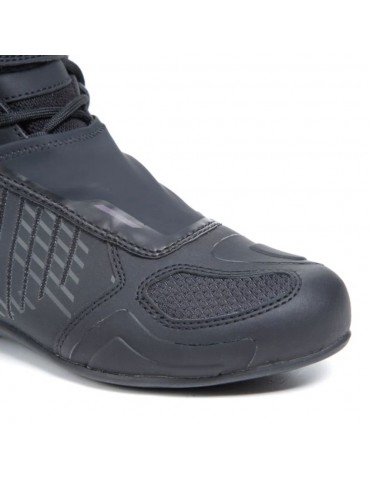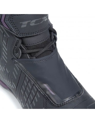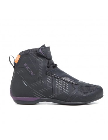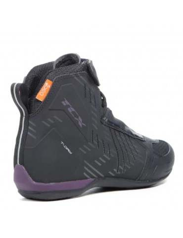 Zapatillas TCX R04D Lady WP negro. Las zapatillas TCX R04D Lady Waterproof han sido pensadas para satisfacer las necesidades de las usuarias en recorridos cortos tanto urbanos como fuera de urbe con una clara orientación deportiva. Diseñadas específicamente para la forma del pie femenino tienen la parte superior en malla transpirable y membrana impermeable T Dry además de inserciones D3O en el tobillo y refuerzos en la puntera y el talón.