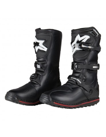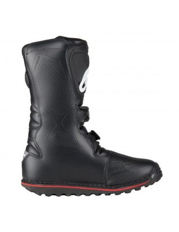 Botas ALPINESTARS Tech T negro / rojo. Fabricadas en piel de plena flor y microfibra, resaltan por ser realmente perdurables y agradables. Disponen de nueva espinillera ergonómica y suela que ofrece altos niveles de agarre, tacto y durabilidad. Han sido desarrolladas y testeadas por la historia legendaria del trial Toni Bou.