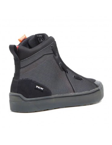 Zapatillas TCX Ikasu WP negro / reflex. Fabricadas en tejido mesh reflectante y microfibra con forro impermeable T-Dry que mantiene los pies secos en todo momento. El cierre es a través de cordones y cremallera. Cuenta con protección tanto en la puntera como en el talón y el maléolo que lleva inserciones D30 de última generación. Merced a las moléculas D30, en el caso de impacto, estas partículas se unen, absorben y disipan la energía reduciendo así el golpe. La suela Groundtrax está diseñada para asegurar estabilidad, adherencia y tracción tanto arriba de la moto como fuera de ella. La entresuela tiene una inserción Zplate para sostener una adecuada flexibilidad de la zapatilla y además de esto garantiza una adecuada rigidez trasversal para proteger el pie en caso de caída.