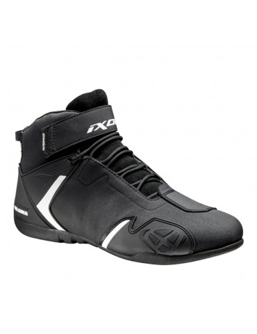 Botas IXON Gambler WP negro / blanco. Diseño deportivo y membrana impermeable y transpirable para mayor utilidad en diferentes tiempos. Dan un genial ajuste y confort y además de esto garantizan una inmejorable seguridad merced a a las protecciones situadas en la puntera, el talón y la zona del cambio. El cierre a través de velcro y cordones es seguro y veloz.