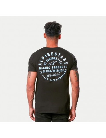 Camiseta ALPINESTARS Capped Tee negro. Camiseta de manga corta, 100% algodón peinado con gráfico de señalización vintage en la espalda y el pecho, Capped by Alpinestars.