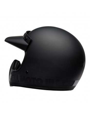 Casco BELL Moto-3 Classic blackout mate / brillo. El Moto-3 actual sigue manteniendo la elegancia de antaño, con el beneficio añadido de la seguridad moderna y las mejoras en la producción. Desde la calota de fibra de vidrio hasta la cinta forrada en EPS de la barbilla, todo se ha cuidado hasta el último detalle. Los colores sólidos usan el mismo estilo del forro de felpa original, mientras que las gráficos de artistas colaboradores presentan un forro afelpado de microante.