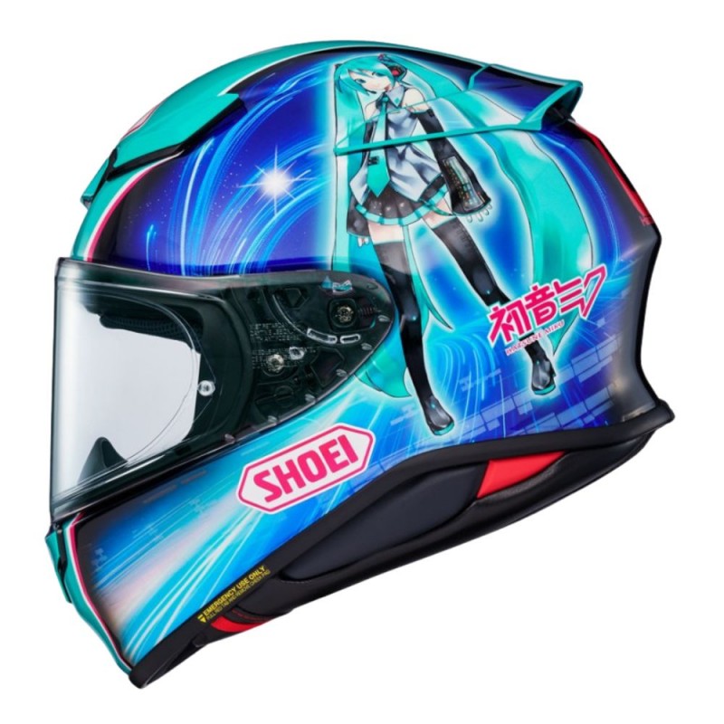 Casco SHOEI NXR 2 Hatsune Miku TC4. Shoei evoluciona su triunfante casco integral deportivo y pertrecha al NXR 2 con los últimos avances en tecnología. Ofrece un alto desempeño aerodinámico, buena visibilidad, ventilación eficaz, un ajuste cómodo, un tamaño sólido y un peso ligero. El nuevo Shoei NXR 2 nace como el nuevo casco deportivo premium que reúne todas y cada una estas peculiaridades. Es el casco Shoei más ligero con el nuevo certificado de la regla ECE22/06 y resalta por ser exageradamente cómodo.
