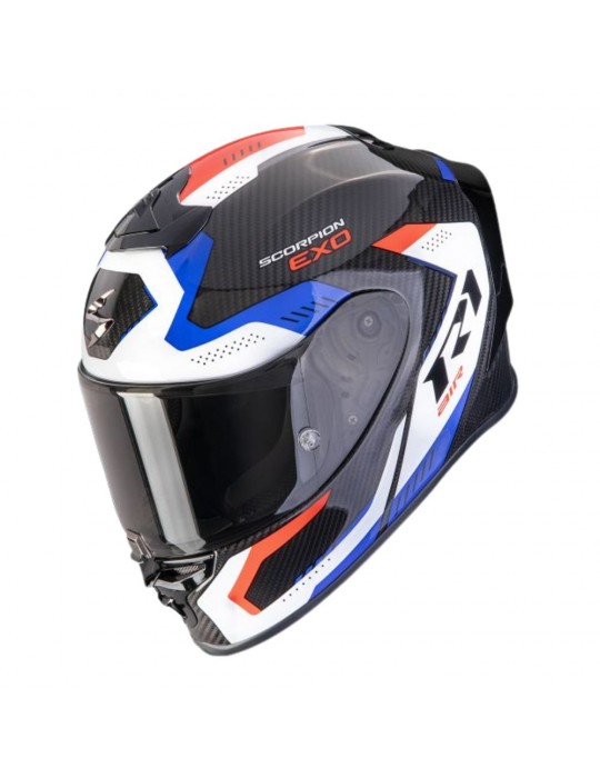 Casco SCORPION EXO-R1 Evo Carbon Air Propel negro / blanco / rojo. El Exo-R1 Evo Carbon Air es un casco integral deportivo de alta gama que combina ligereza y protección avanzada gracias a su calota Ultra TCT® fabricada en fibra de carbono y certificación ECE 22-06.