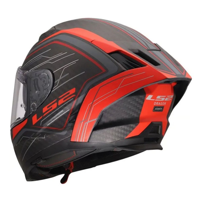 Casco LS2 FF807 Dragon Subic rojo. El FF807 Dragón es el nuevo casco integral racing de LS2, cuenta con los últimos avances tecnológicos de la marca derivados de MotoGP. Dispone de un sistema de bloqueo de visera fácil con parche de seguridad reflectante, de un avanzado sistema de ventilación y de unos acolchados interiores muy confortables. Cuenta con sistema de extracción de emergencia.
